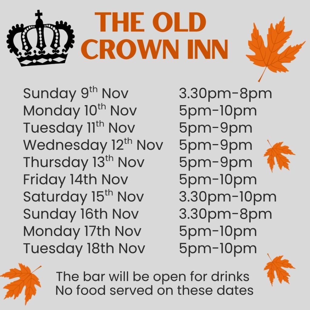 Updated opening hours from Sun 9th- Tues 18th November 2025…
